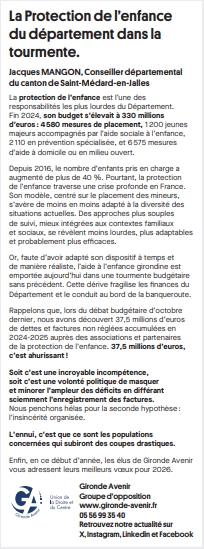 Agnès VERSEPUY-Jacques MANGON # protection de l'enfance # Gironde Avenir # Saint-Médard-en-Jalles # Conseil départemental